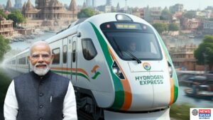 This image captures the momentous occasion when Prime Minister Narendra Modi officially launched India’s first hydrogen-powered train in Varanasi. The launch represents a significant breakthrough in sustainable transportation technology, positioning India as the fifth country globally to deploy hydrogen train technology alongside Germany, France, Sweden, and China. The train, developed indigenously under the Make in India initiative, features 1200 HP capacity and can carry 2,638 passengers while producing zero emissions – only water vapor. This eco-friendly locomotive is part of the ambitious “Hydrogen for Heritage” project, which aims to deploy 35 hydrogen trains across the country. The image symbolizes India’s commitment to green mobility solutions and represents a crucial step toward achieving net-zero carbon emissions in the railway sector by 2030. The hydrogen train will initially operate on the Jind-Sonipat route in Haryana, demonstrating cutting-edge fuel cell technology that combines hydrogen and oxygen to generate electricity, making it a completely pollution-free transportation solution for the future.