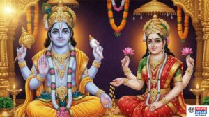 Rama Ekadashi 2025, featuring a divine illustration of Lord Vishnu and Goddess Lakshmi. This significant Hindu festival, which falls in the holy month of Kartik just before Diwali, is dedicated to seeking their blessings. According to the Hindu calendar, the fast (vrat) will be observed on October 17, 2025, with the breaking of the fast (Paran) scheduled for the next day, October 18. Observing the Rama Ekadashi fast with devotion is believed to cleanse one of their sins and bestow wealth, happiness, and a path to salvation (moksha).