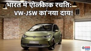 “Electric Revolution in India: VW-JSW’s New Bet!”. This visual represents the significant joint venture talks between Volkswagen and JSW Group, which aim to manufacture affordable electric vehicles locally in India and potentially transform the country’s automotive landscape.